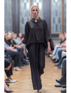 Kaftanlicious Tmavě hnědý kalhotový komplet s košilí s netopýřími rukávy
