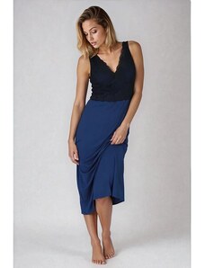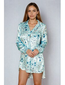 Blancheporte Noční košilka s krajkou a tropickým potiskem nebeská modrá