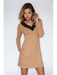 Moniel košilka/šaty kojící Pastel béžová s dlouhým rukávem