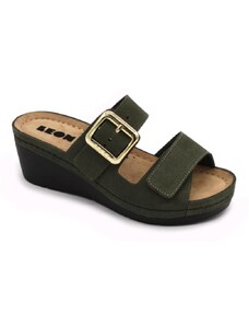 Leon 6006 Dámské korkové pantofle na platformě - zelené