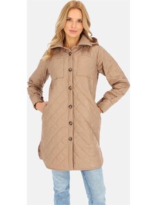 Perso Lehká hnědá prošívaná dámská bunda s kapucí