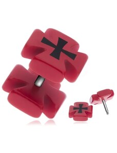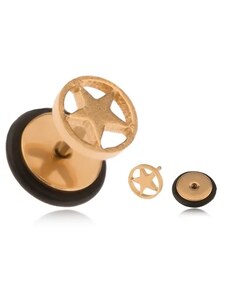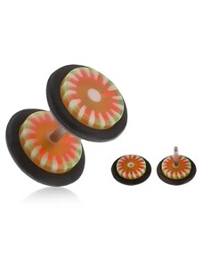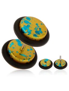 Šperky Eshop - Falešný plug do ucha z akrylu zlatohořčicové barvy, tyrkysové skvrny PC01.26