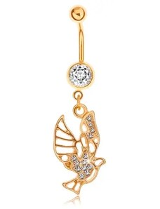 Šperky Eshop - Piercing do bříška zlaté barvy, pták zdobený výřezy a čirými zirkony SP73.23