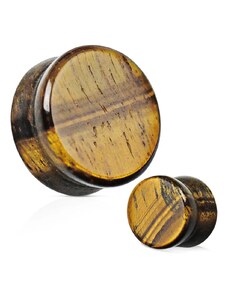 Šperky Eshop - Plug do ucha s polodrahokamem tygří oko - hnědý, přírodní design, různé velikosti V14.07 - Tloušťka piercingu: 14 mm