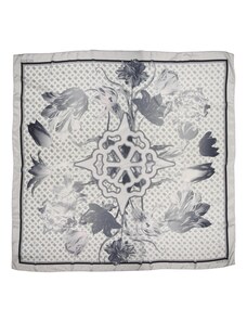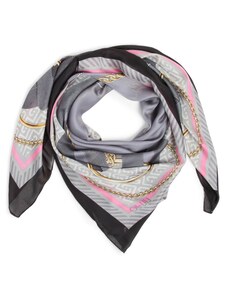 BASIC Světle šedý dámský šátek s pruhy -grey Károvaný vzor