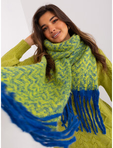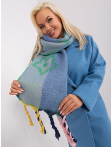ITALY MODA Limetkově-modrá vzorovaná šála s třásněmi -dark blue Zelená