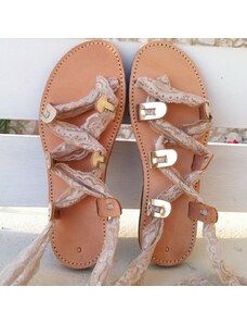 Grecian Sandals Golden Gladiator Lace Up Leather Sandals