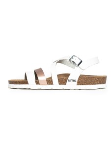 Boto Ozdobené dámské sandály na plochém podpatku se pásky a sponou béžové Manitte