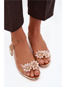 S.Barski Průhledné sandály na nízkém podpatku s ozdobnými detaily D&A MR52-229 Zlaté