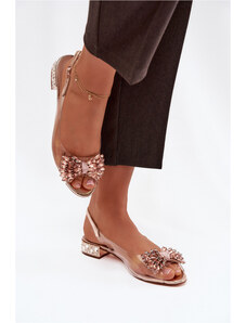 S.Barski Průhledné sandály na nízkém podpatku s krystaly a ozdobou D&A MR52-230 růžové zlato