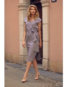 FIGL Elegantní šaty s páskem M674 Gray Šedá