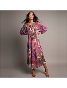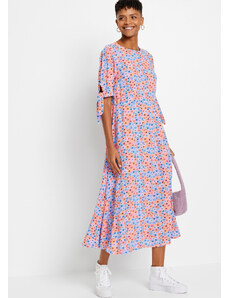 Blancheporte Dlouhé kreponové šaty s potiskem a volány modrá/růžová