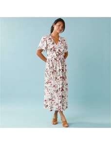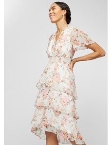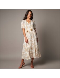 Blancheporte Kreponové midi šaty s potiskem květin bílá/karamelová