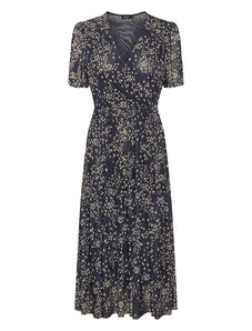 NUMOCO Béžovo-modré květované šaty s výstřihem a krátkým rukávem MATYLDA Květinový vzor