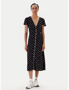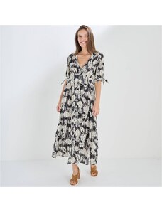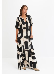 Blancheporte Dlouhé rozšířené šaty na knoflíky, kreponové s potiskem černá/bílá