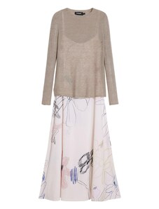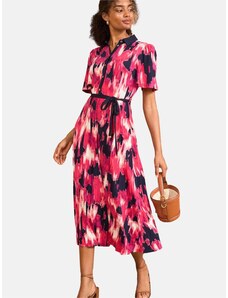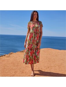 Blancheporte Kreponové midi šaty s výstřihem do V a vícebarevným potiskem khaki/růžová