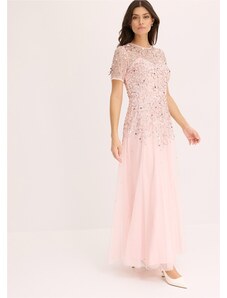 Bonprix Maxi šaty z něžného tylu, s výšivkou s flitry růžová Žena