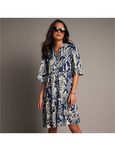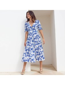 Blancheporte Krátké viskózové šaty s potiskem květin režná/modrá