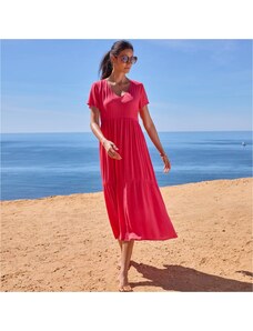Blancheporte Kreponové jednobarevné midi šaty s výstřihem do V malinová