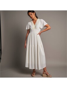 Blancheporte Rozšířené kreponové dlouhé šaty s macramé režná