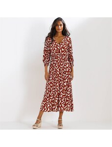 Blancheporte Jednobarevné dlouhé kreponové šaty na knoflíky, s dvoubarevným potiskem terakota/režná