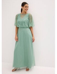 Bonprix Maxi šaty z jemného tylu, s flitrovou výšivkou zelená Žena