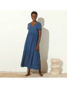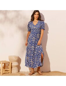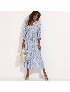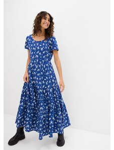 Blancheporte Dlouhé rozšířené šaty na knoflíky, kreponové s potiskem modrá