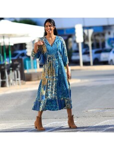 Blancheporte Dlouhé kreponové šaty s potiskem modrá/béžová