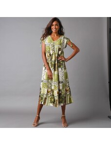 Blancheporte Midi šaty s rozparky a potiskem khaki/zelená