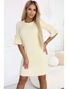 Numoco NEVA áčkové šaty s vázáním na rukávech pastelově žluté Žlutá