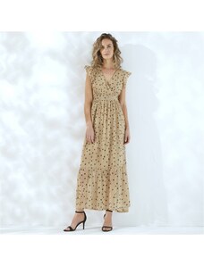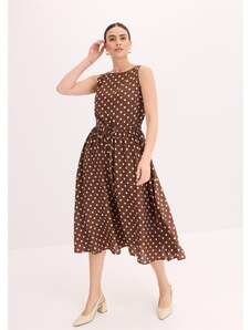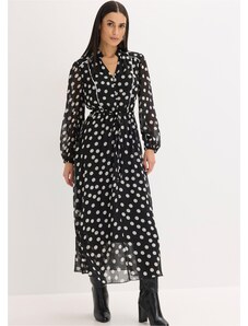 Blancheporte Dlouhé voálové šaty se zavinovacím efektem a potiskem puntíků béžová/černá