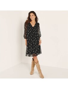 Blancheporte Krátké voálové šaty se sámky a potiskem puntíky černá/bílá