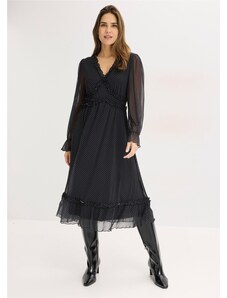 Bonprix Šifonové šaty s kontrastními paspulkami černá Žena
