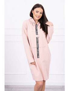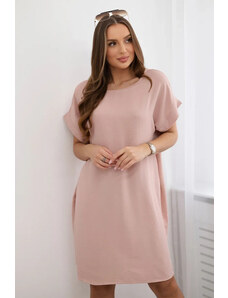 K-Fashion Dámská bavlněná šaty Plus Size s ohrnutým rukávem a kapsami pudrově růžová