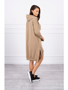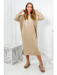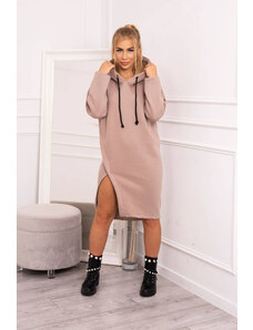 K-Fashion Šaty s kapucí a bočním rozparkem tmavě béžové