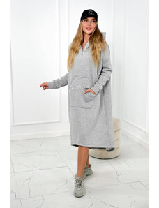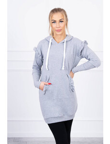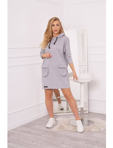 K-Fashion Šaty s ozdobnými volánky a kapucí šedé barvy