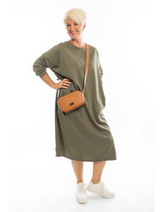 RELEVANCE Khaki delší mikinové šaty s kapucí -khaki