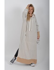 K-Fashion Dlouhé šaty s kapucí světle béžová