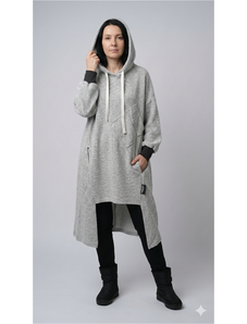 K-Fashion Oversize šaty s kapucí v grafitové barvě