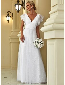 Ever Pretty Krajkové svatební šaty s volánkovými nabíranými rukávy