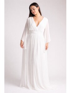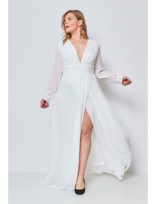 Eva & Lola Svatební šaty s hlubokým výstřihem a dlouhými rukávy