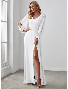 Eva & Lola Elegantní svatební šaty s výstřihem do V a dlouhými rukávy