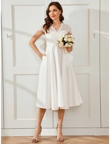 Ever Pretty Svatební šaty v midi délce s krajkovým živůtkem
