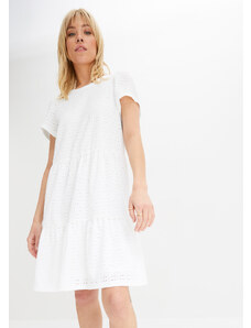 Bonprix Žerzejové šaty s krátkým rukávem a kapsami, ze směsi materiálů bílá Žena