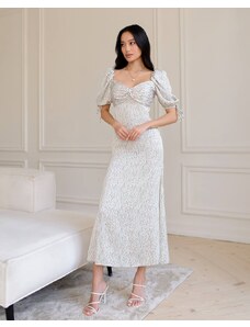 BASIC Bílé midi šaty s květinovým vzorem Emma Květinový vzor