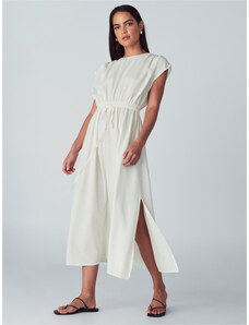 Sinsay - Bavlněné ажurní midi šaty s řasením - bílá