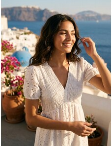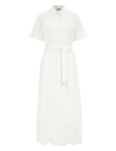Sinsay - Bavlněné midi šaty s ažurovými detaily - bílá