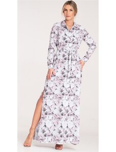 FIGL Dámské vzorované bílé košilové maxi šaty Bílá
