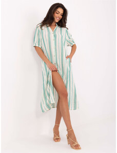 BASIC Smetanovo-zelené dámské plážové košilové šaty -white-green Bílá