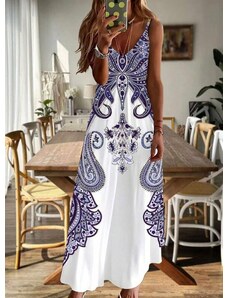 Kesi Dámské plus size maxi šaty s volánem off-shoulder a elastickým pasem béžové